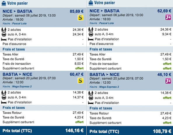 Voici un exemple de ce qui peut être gagné sur une traversée pour la Corse avec la Corsica ferries. L’économie n’est pas négligeable.