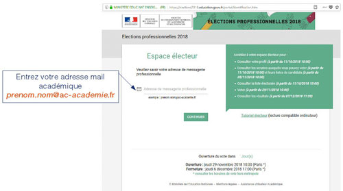 Se connecter sur https://elections2018.education.gouv.fr/portail/identification.htm et saisir son adresse mail académique.