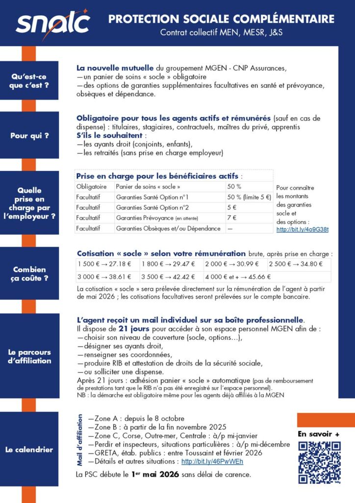 - Si la couverture proposée par la MGEN (avec ou sans option) à partir de mai 2026 n’est pas suffisante pour vos besoins, n’hésitez pas à faire des devis pour une surcomplémentaire pour compléter votre couverture.